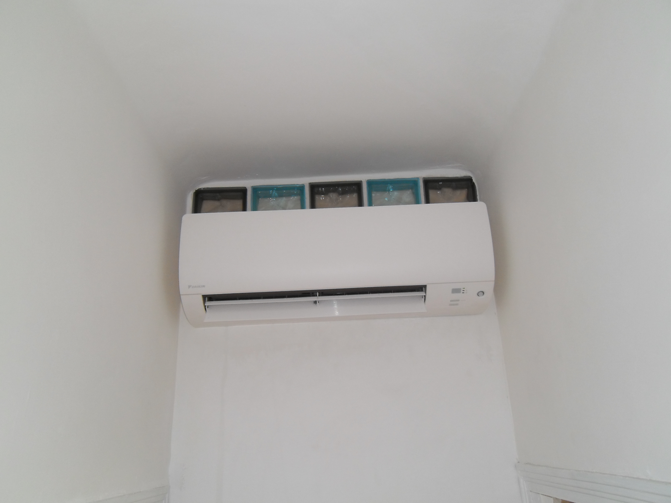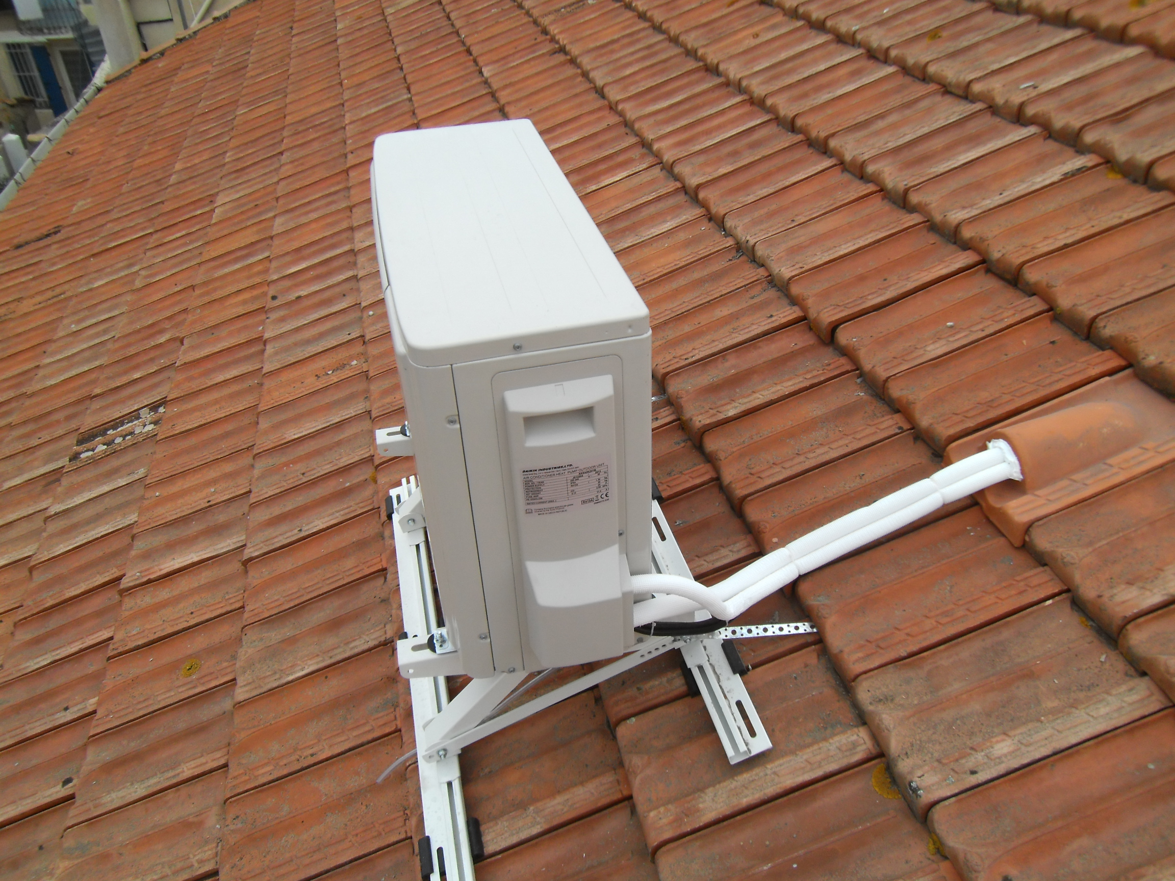 Voici une installation de climatisation mono-split DAIKIN ou nous n’avions pas d’autres alternatives viables et satisfaisantes que de poser le groupe extérieure (compresseur) sur le toit.