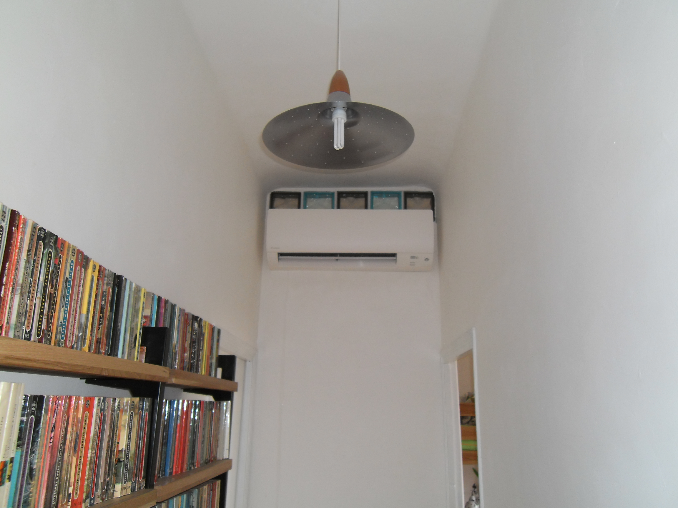 L’unité intérieure (évaporateur) au design soigné DAIKIN FTXS est conçue dans une optique de simplicité et de fonctionnalités optimales. De part son design moderne et épuré, l’unité murale de la pompe à chaleur Air/Air reste discrète pour s’intégrer totalement aux petits espaces comme ce couloir.